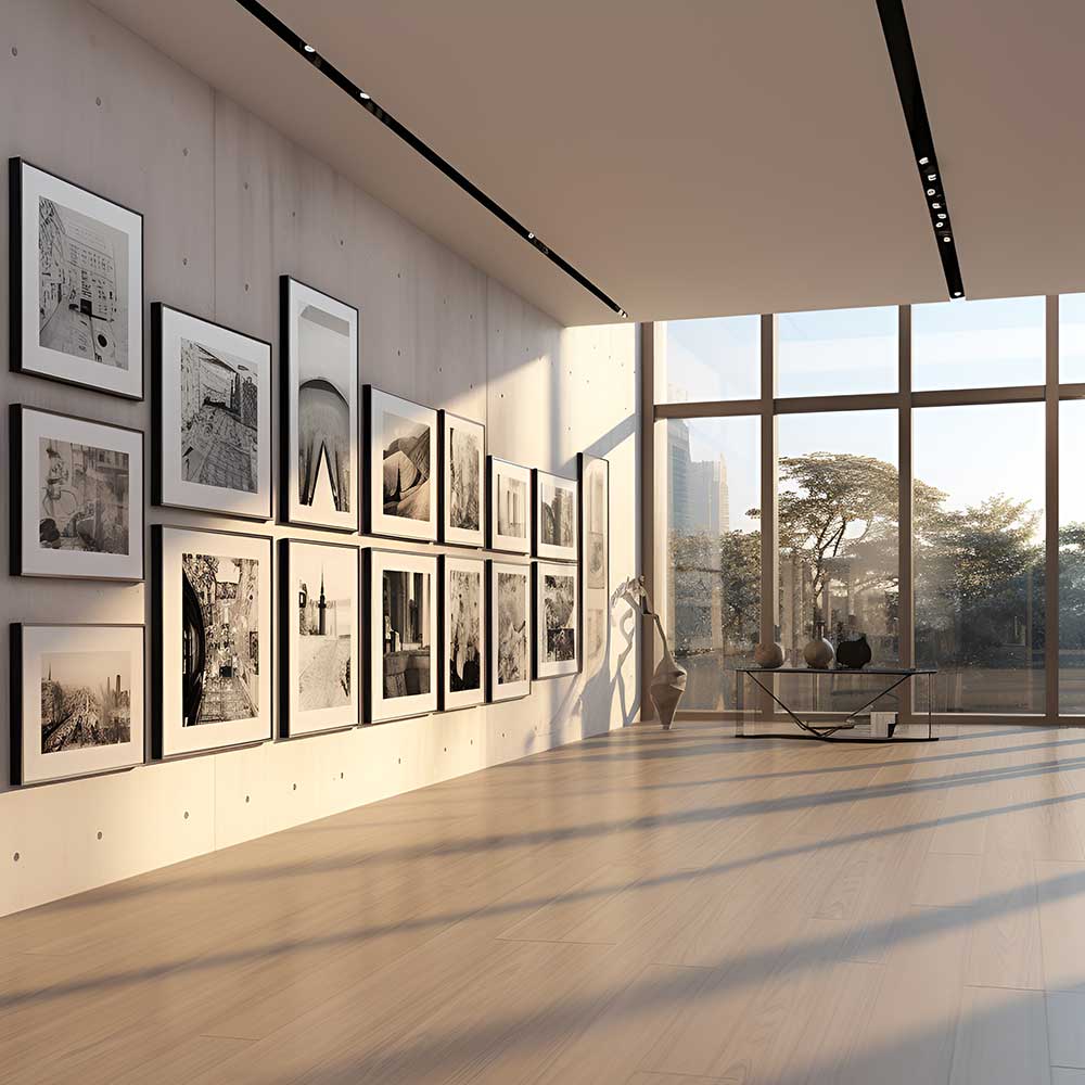 Оценка текущей ситуации, изучение особенностей помещения и его потенциала для оптимального размещения картин и осветительных систем.